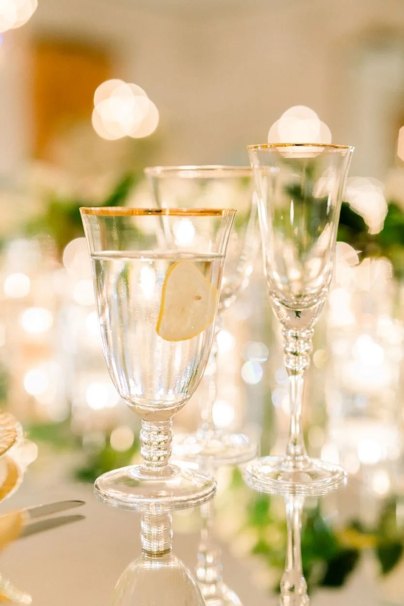 When these two approached us, they knew they wanted something that was over-the-top elegant, while still feeling classic, romantic, and intimate - and that’s exactly what we brought to this black-tie affair. When we heard there would be rain, we swiftly pivoted to an indoor ceremony in the Library Lobby. (“It is what it is” was the repeated mantra for the weekend!) Playing off the Presidential Seal on the tile floor, we set up a ceremony in the round, showcasing their majestic Sofreh in the center in honor of our groom’s Persian heritage. As a nod to the couple’s Yorba Linda upbringing (and current hometown), we also ensured the ceremony placement would allow for the larger-than-life mural of Nixon himself to be in the background of their key shots!