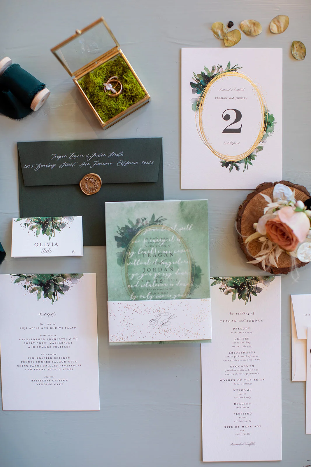 Given the freedom to design anything we wanted, Carlos at NPD and I instantly knew we would take inspiration from the enchanted, fairytale forest feel of the Falls Arbor space. The first thing we selected was the Forest French Velvet linen from Luxe Linen and the design plans effortlessly unfolded from there.